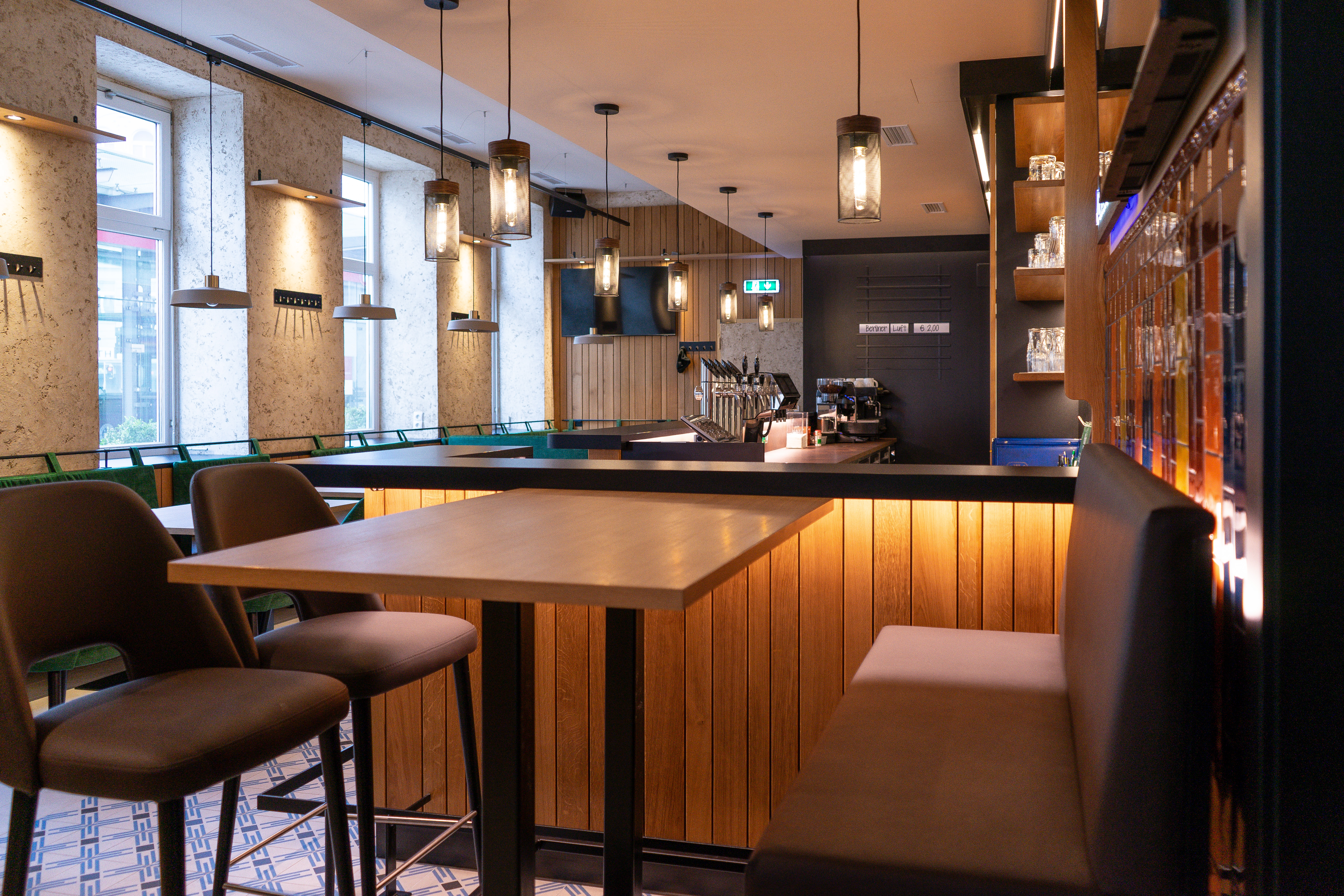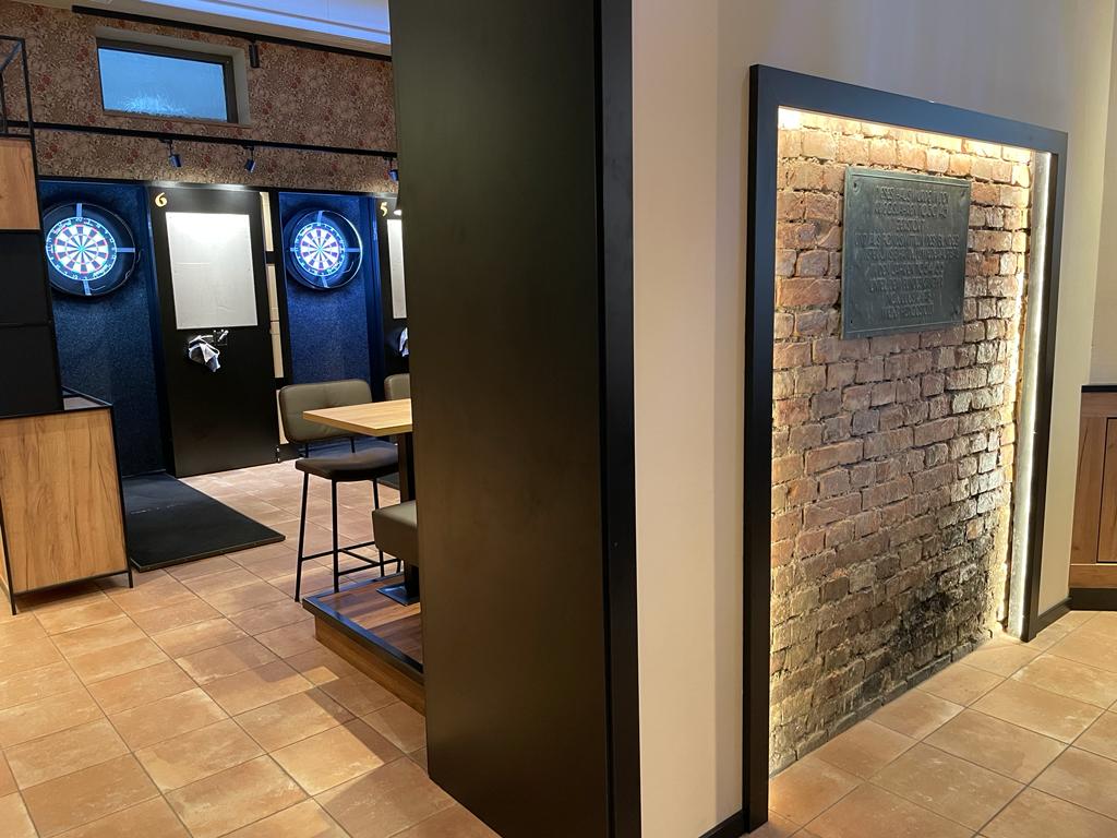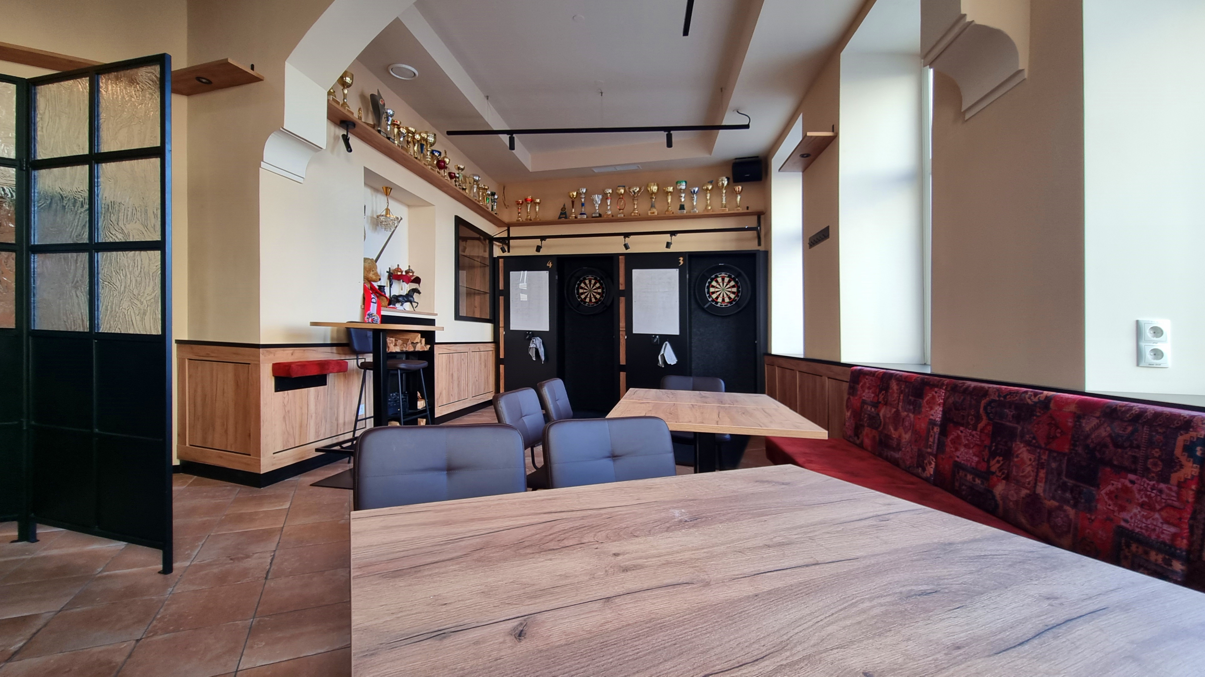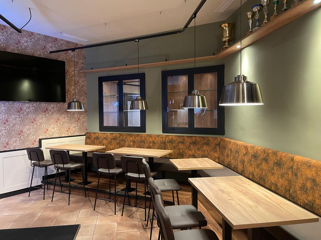 Trotz sportlichem Fokus bleibt der Charakter der Dartbar erhalten: gemütliche Sitzecken, warme Farben und authentisches Ambiente. Farb- und Materialkontraste, klare Linien und gut zonierte Bereiche schaffen Raum für verschiedene Stimmungen – vom entspannten Guinness-Abend bis zur sportlichen Spielrunde. Eine moderne Bar, ohne dass Gemütlichkeit zu kurz kommt.