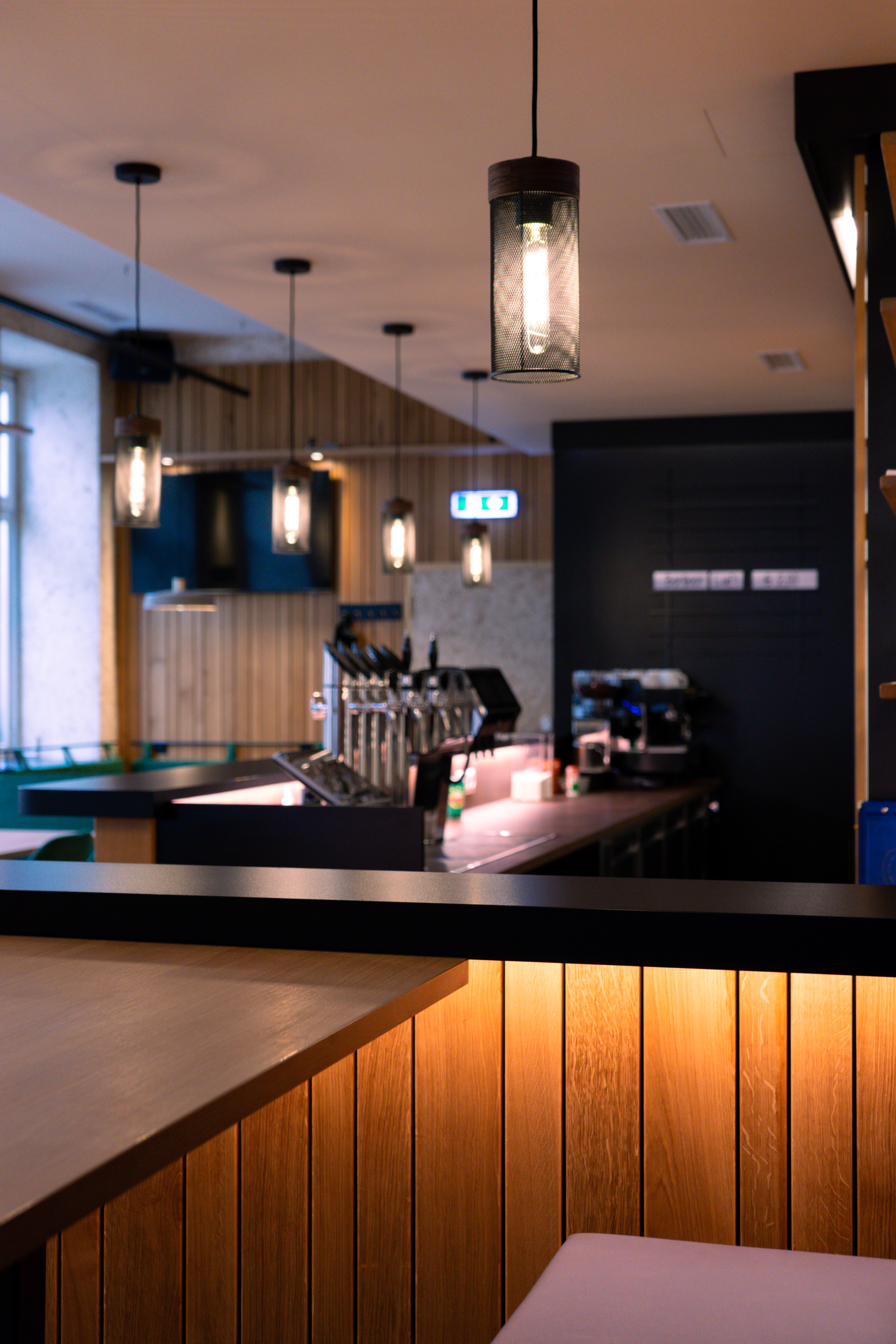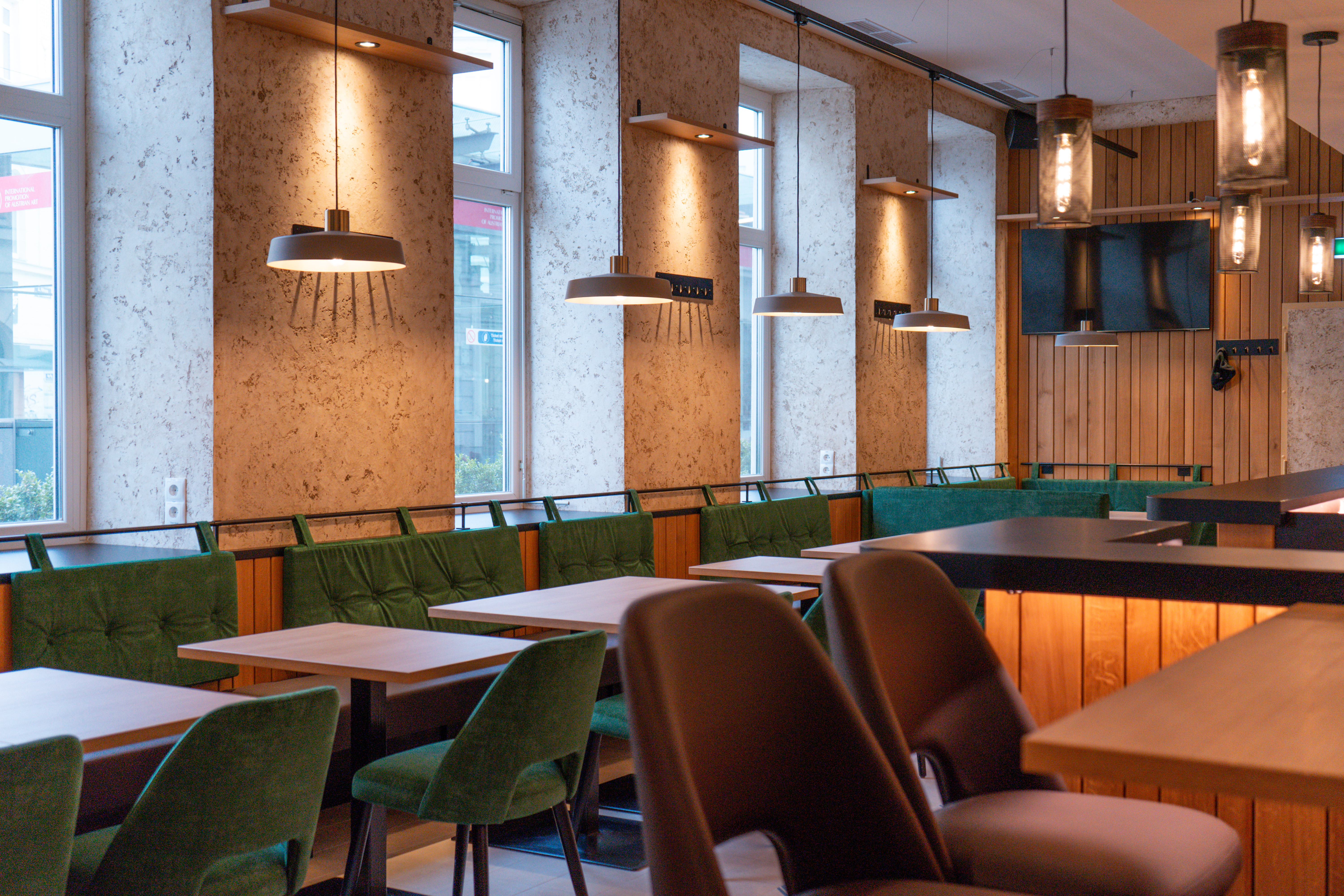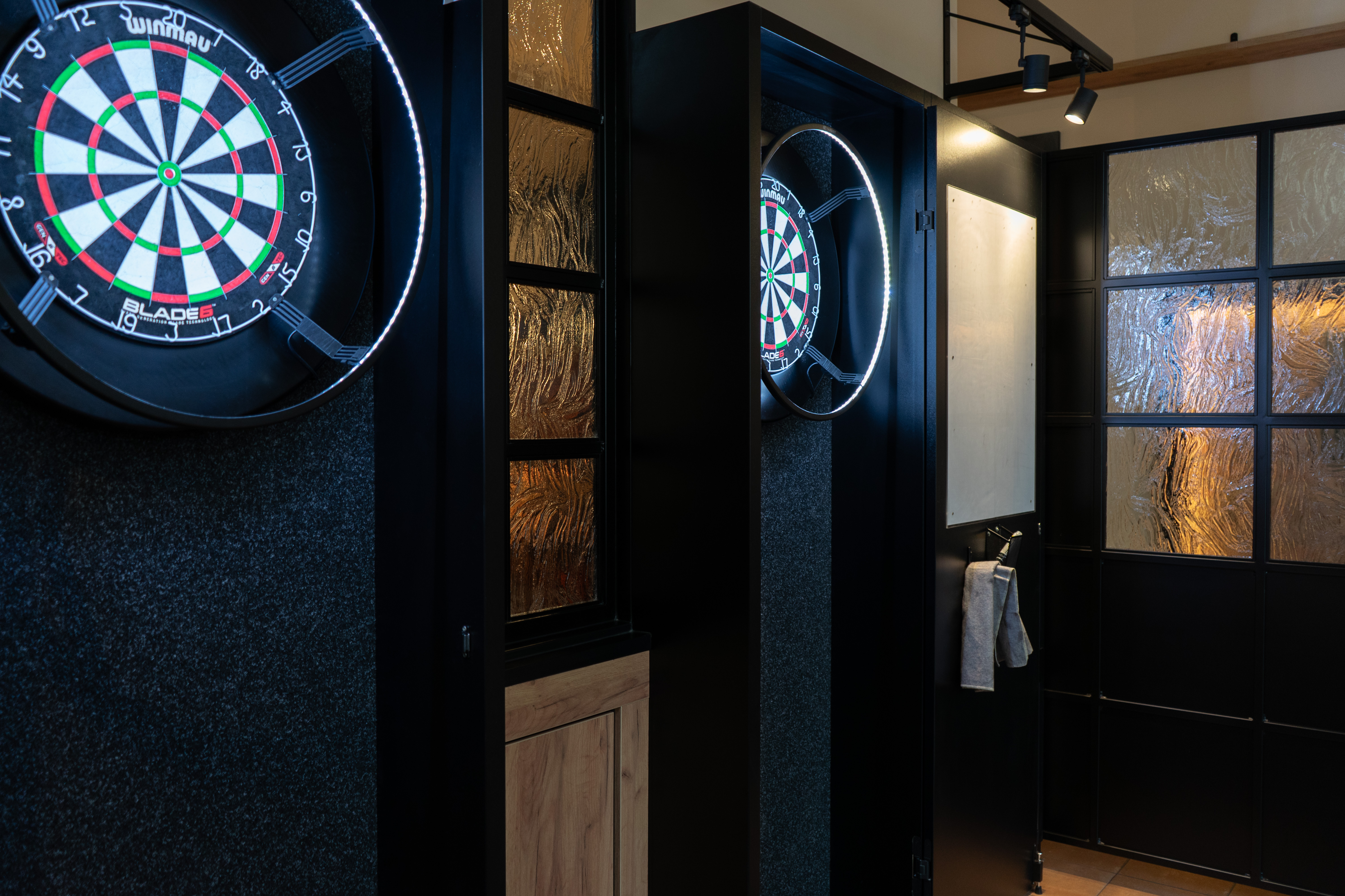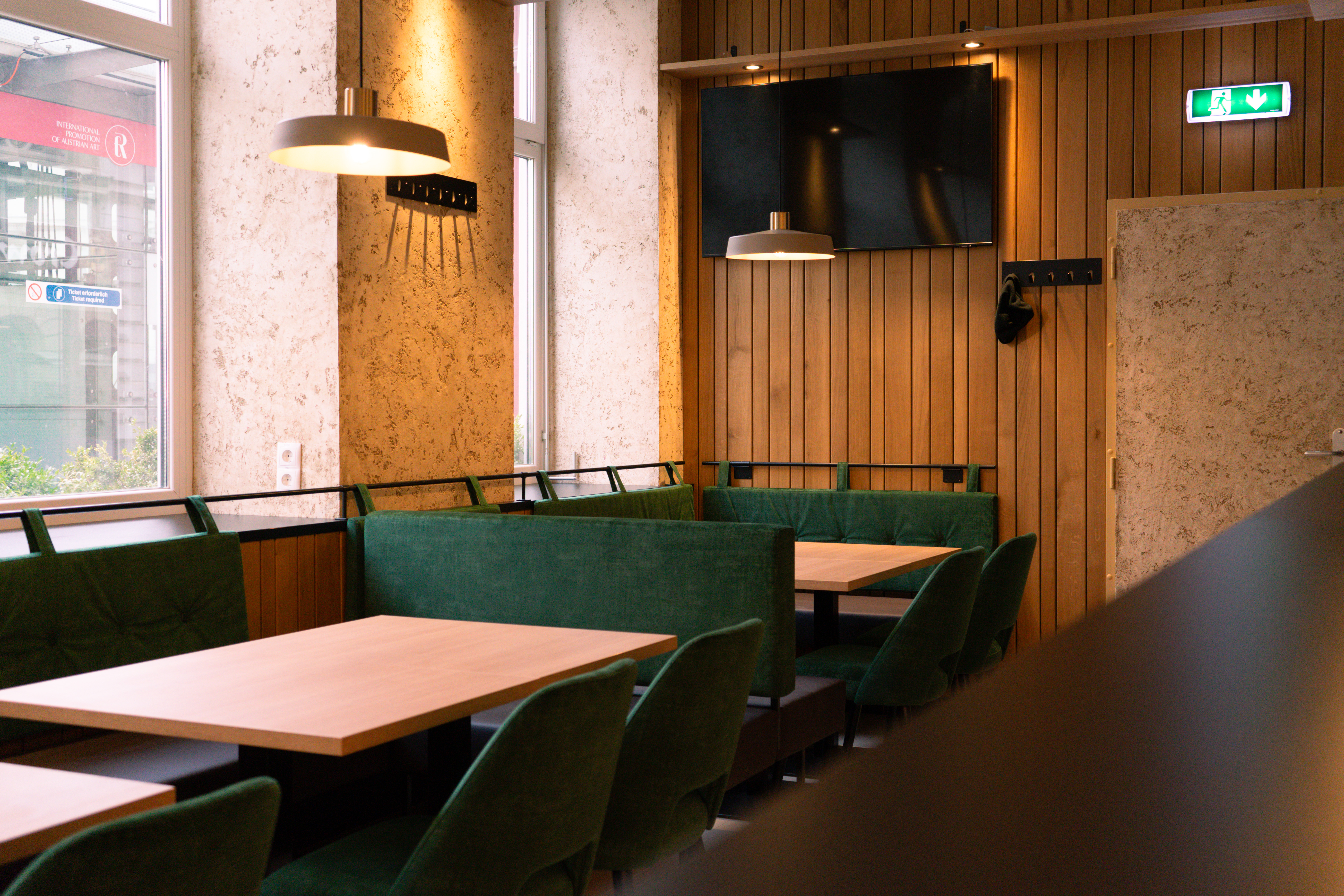 Trotz sportlichem Fokus bleibt der Charakter der Dartbar erhalten: gemütliche Sitzecken, warme Farben und authentisches Ambiente. Farb- und Materialkontraste, klare Linien und gut zonierte Bereiche schaffen Raum für verschiedene Stimmungen – vom entspannten Guinness-Abend bis zur sportlichen Spielrunde. Eine moderne Bar, ohne dass Gemütlichkeit zu kurz kommt.