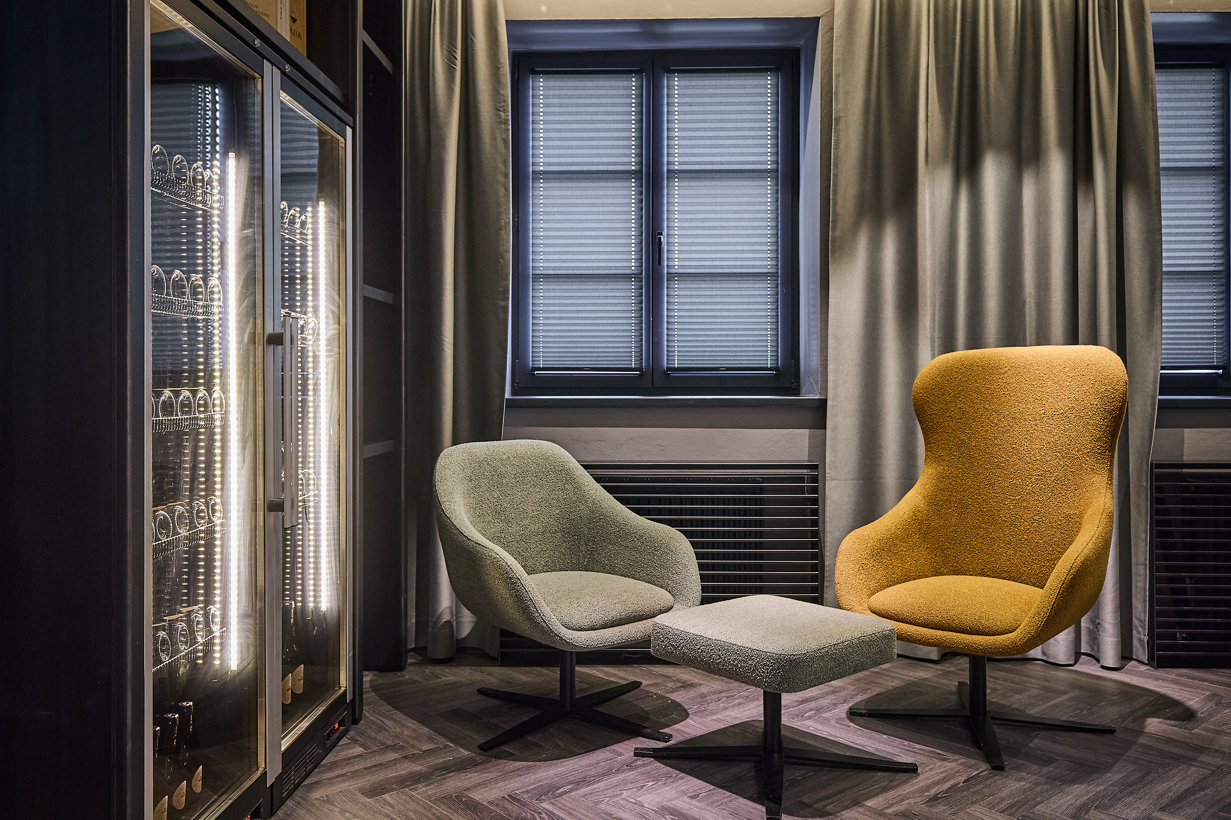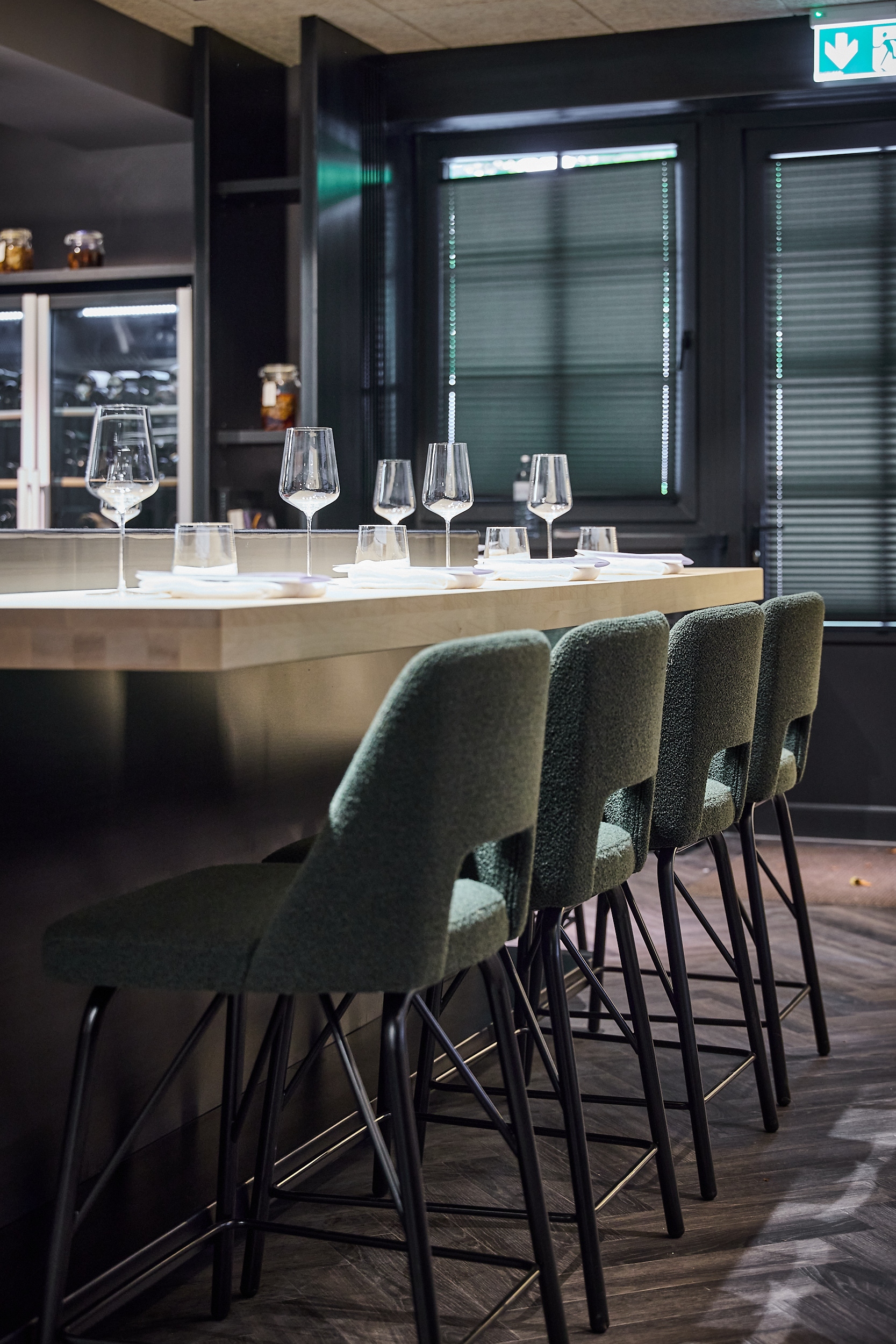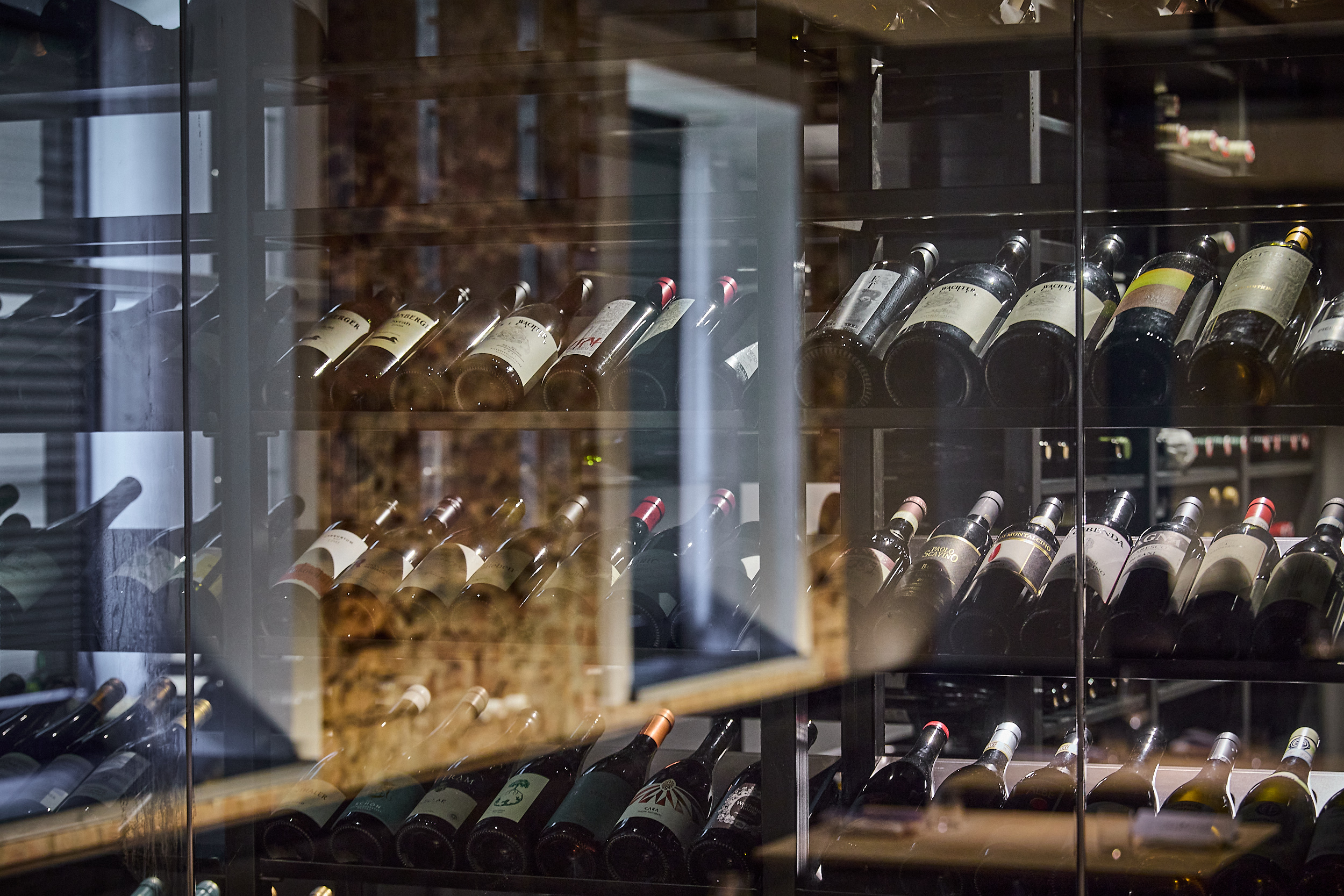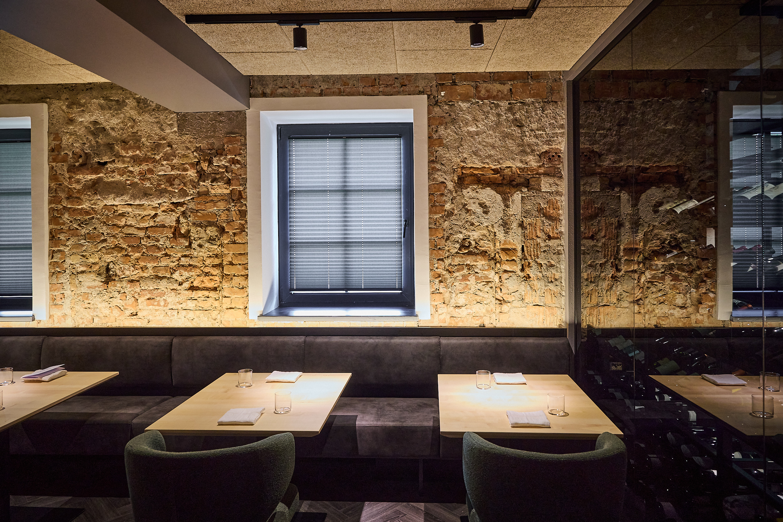 Das Restaurant vereint zeitloses Design mit feiner Gastlichkeit. Weiche Stoffe, natürliche Materialien und sanftes Licht schaffen einen Rahmen, in dem jeder Moment besondere Bedeutung erhält. Durch die Glaswand schimmert der erlesene Weinkeller – ein Versprechen für die perfekte Begleitung zu jedem Gang.