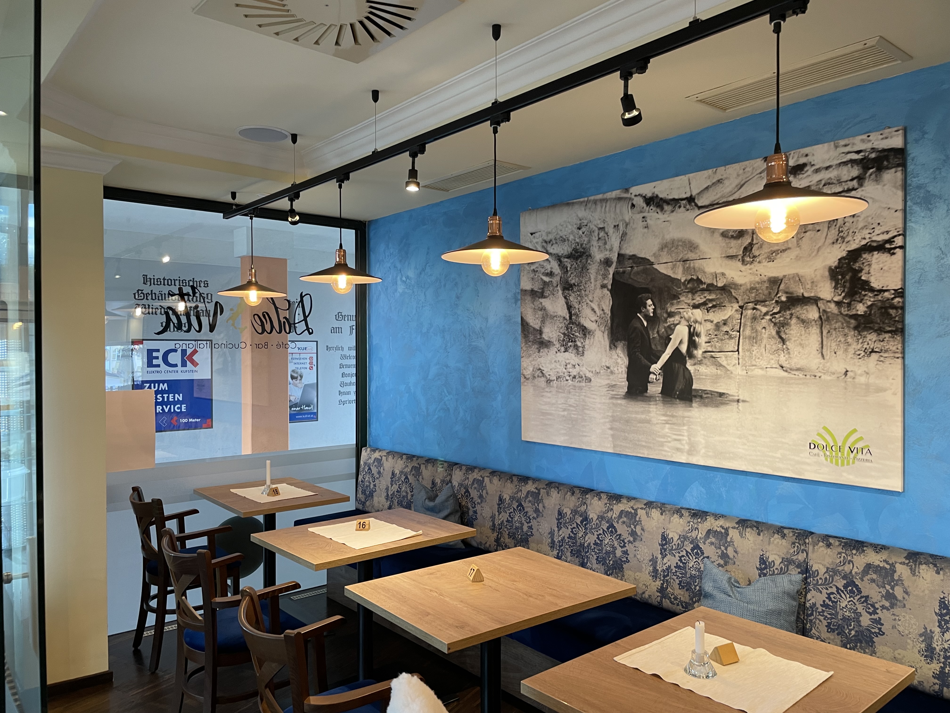 Das Dolce Vita verbindet modernes, stilvolles Design mit mediterranem Flair. Warme Farben, natürliche Materialien und liebevolle Details schaffen ein Ambiente, das zum Verweilen einlädt. Ob für ein gemütliches Abendessen, ein Treffen mit Freunden oder ein besonderes Familienessen – hier fühlt man sich sofort wohl.