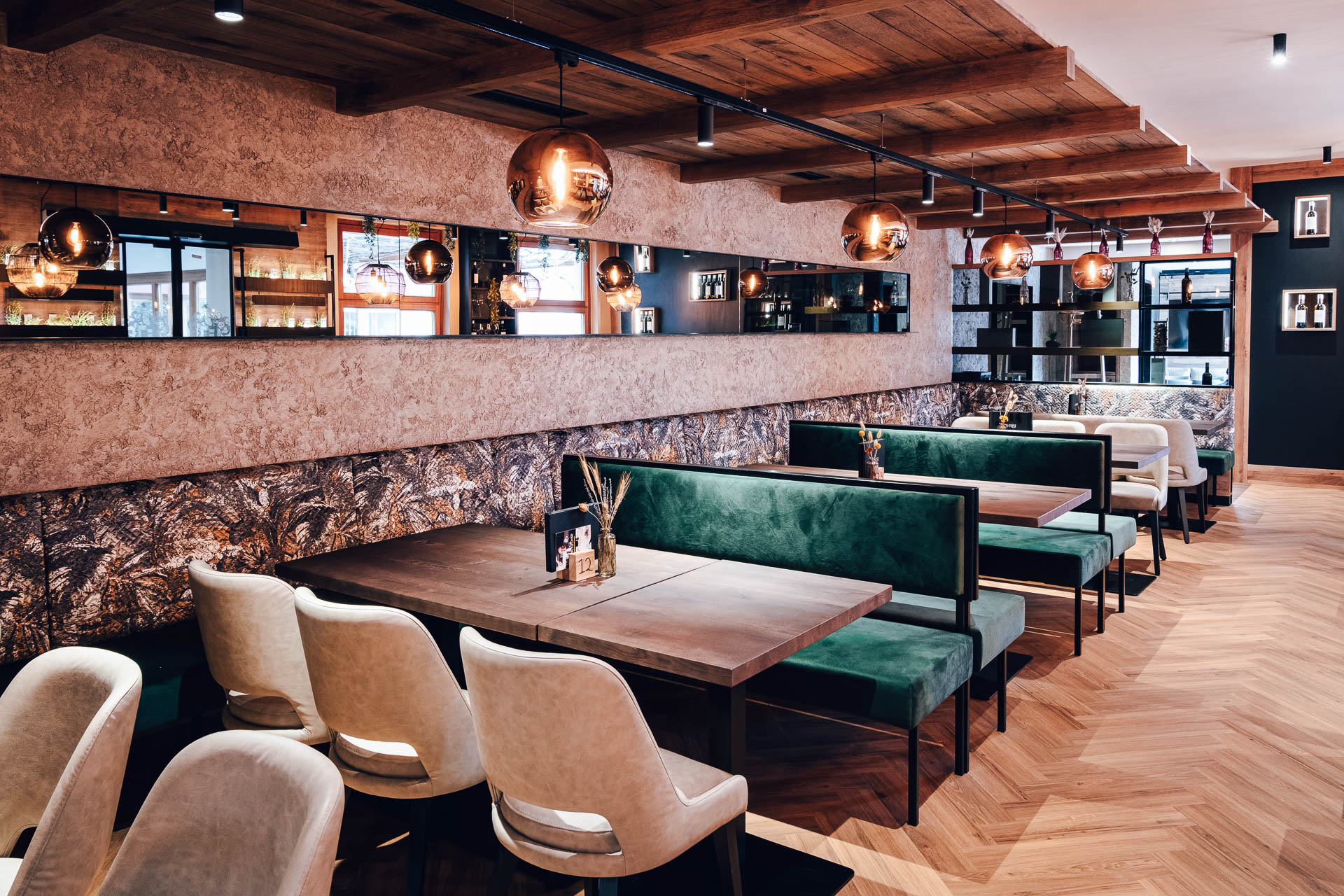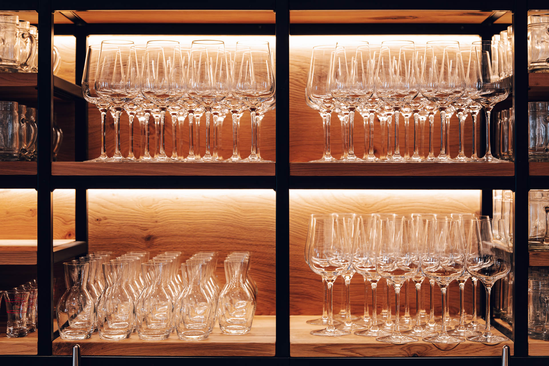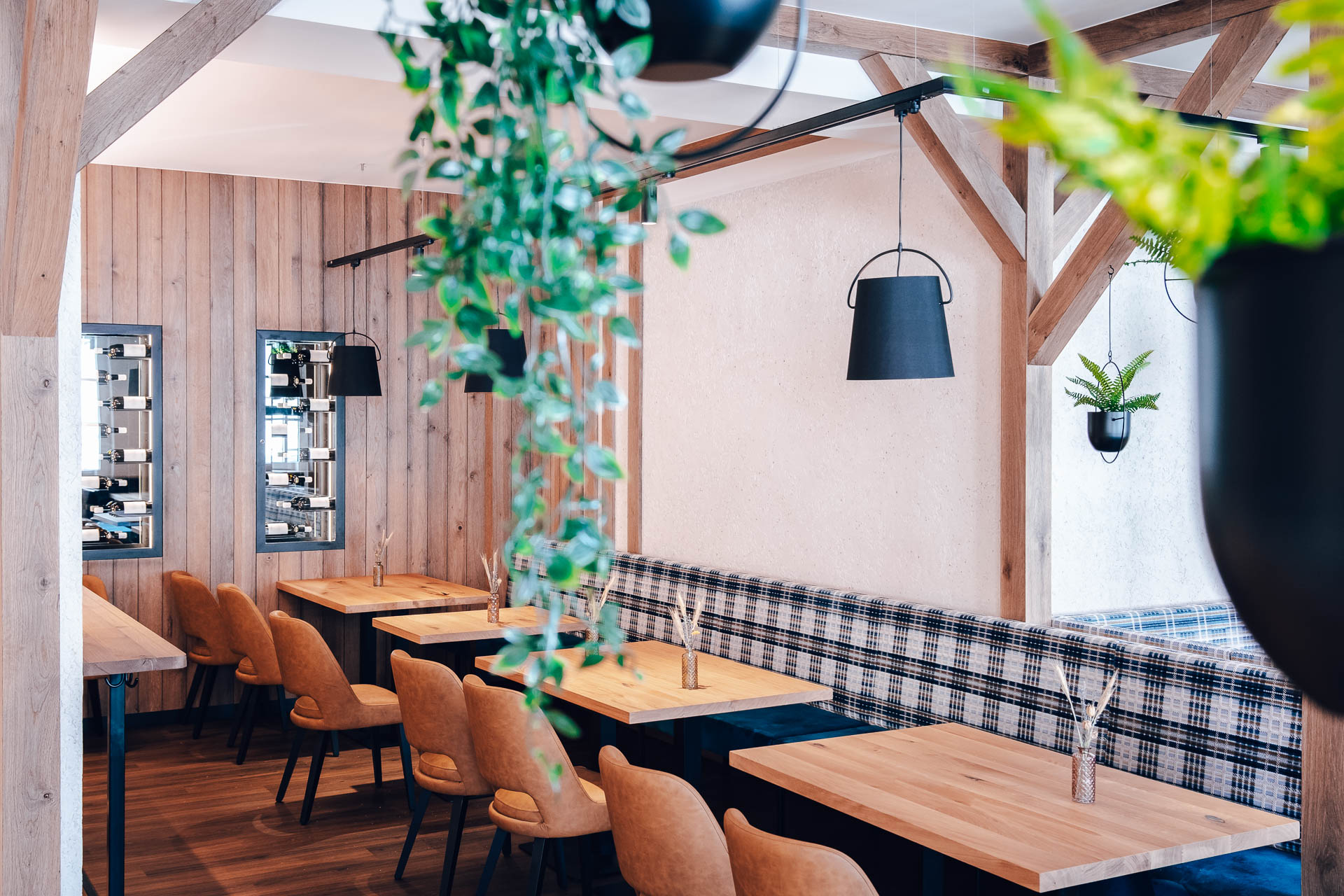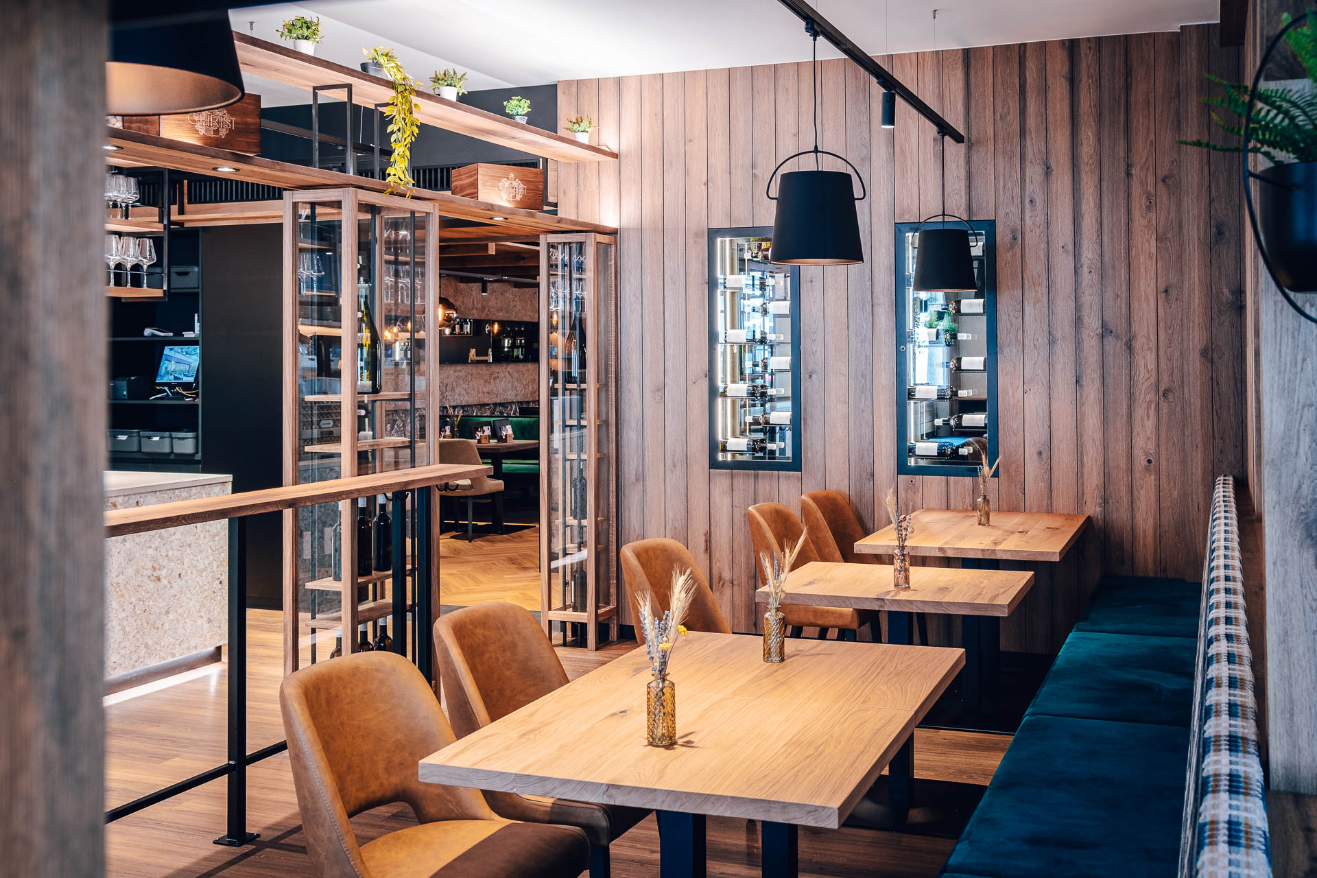 Die Einrichtung verbindet die Leichtigkeit des Wiener Heurigen mit der Eleganz eines modernen Weinguts. Natürliche Materialien, sanftes Licht und warme Akzente schaffen einen Ort, an dem jede Begegnung zu einem besonderen Moment wird. Durch die Glasfronten fällt der Blick auf die sanften Hügel der Weinberge – und auf das Herzstück unseres Hauses: den Weinkeller mit seinen charaktervollen Tropfen, die jeden Gang begleiten.